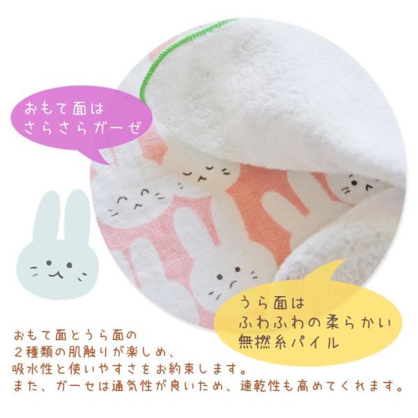 ■表面はさらさらのガーゼで、裏面はふわふわ無撚糸パイルのやさしい肌触り。
