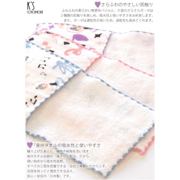 さらさらガーゼ×ふわふわ無撚糸パイルの優しい肌触りで吸水性も抜群です。