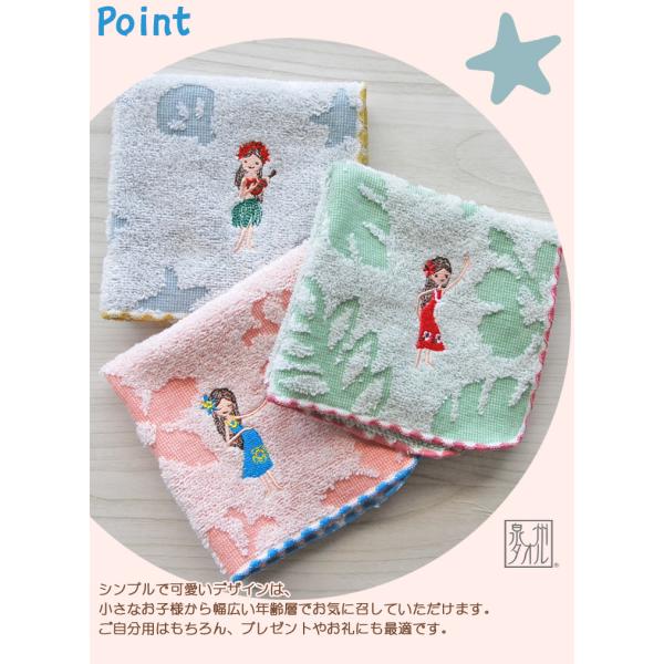 タオルハンカチ フラ フラダンス レディース プレゼント 発表会 かわいい 日本製 綿100% Shinzi katoh フリフリ 約23×23cm 泉州タオル ジャガード ハワイ 優