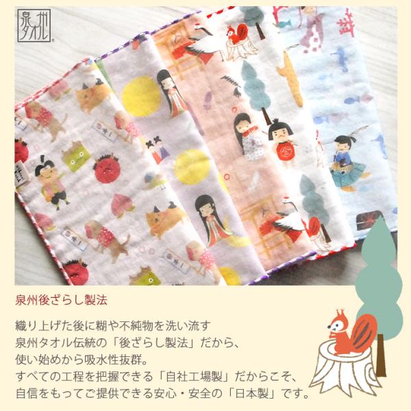 タオル ハンカチ 桃太郎 絵本 キャラクター 子供 月見 プレゼント 日本製 Shinzi katoh 日本昔話 つづり 約23×23cm タオル 泉州タオル インクジェット