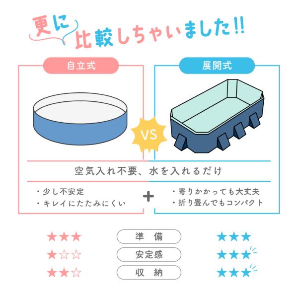 一般的な自立式のプールと異なり、寄りかかっても転倒せず、安定感バツグンです