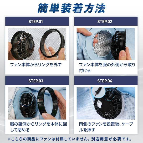 ●ファン付き作業服は水洗い可能ですが、洗濯前に、必ず電池、ファン、電源ケーブルを取り外してください。