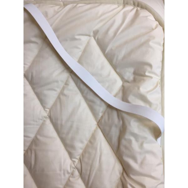 上質なフランス産ウォッシャブル羊毛を100%使用で保温性に優れ、吸湿 発散性に優れた、適度に厚みのあるフカフカのベッドパッドとなっております。夏は涼しく、冬は温かいオールシーズンタイプとなっております。側生地を綿混にすることでお洗濯による縮みがほぼなくなりました!四隅にずれ防止のゴムバンド付きです。