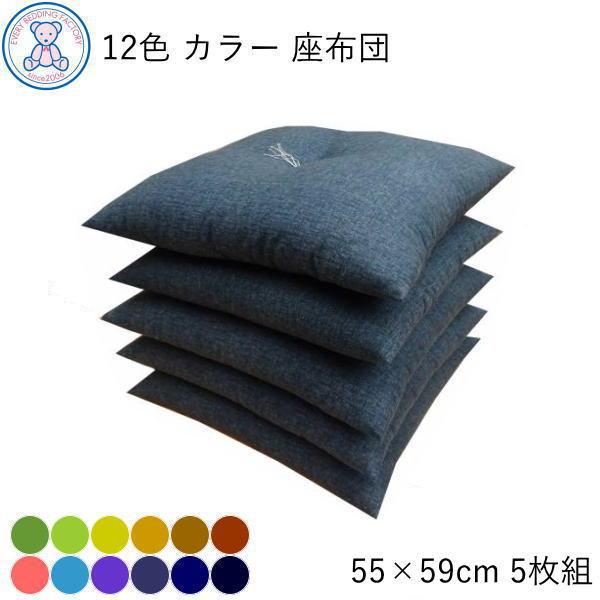 座布団 5枚セット 厚い 銘仙判 55×59cm 日本製 綿100% 無地 おしゃれ 大きめ ざぶとん 5枚組 全12色 和風 国産 和座布団