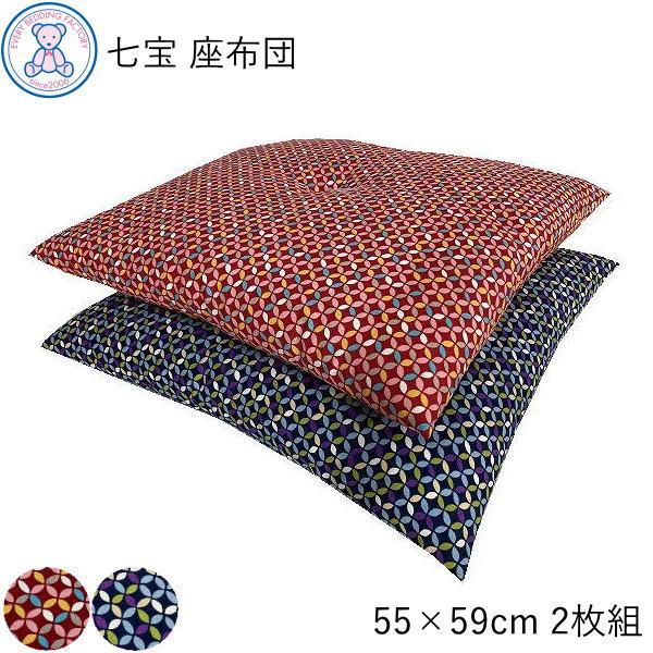座布団 2枚セット 厚い 銘仙判 55×59cm 日本製 綿100% 和柄 おしゃれ 大きめ ざぶとん 2枚組 七宝柄 和風 業務用 国産 和座布団