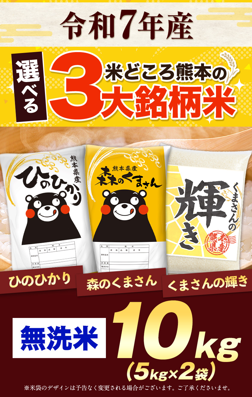 米 お米 10kg 無洗米 令和7年産 熊本県産 ブランド米 選べる 5kg × 2 送料無料 ひのひかり 森のくまさん くまさんの輝き 1-3営業日以内に発送 土日祝除く