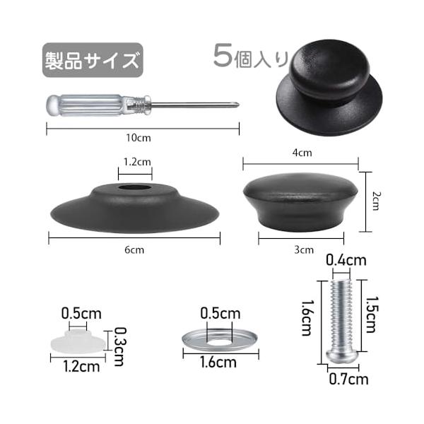 ・仕様:製品には5セットの蓋ノブが含まれており、古い蓋ノブや破損した蓋ノブの交換に便利なねじ回しを装備しています。