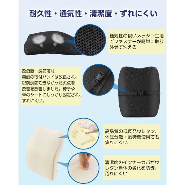 【通気性抜群でムレにくい、取り付けバンドを改良】カバーには通気性の良いメッシュ素材を採用し、長時間の使用でも蒸れにくい。また、裏面の取り付けバンドを改良しましたが、椅子などに調節・固定しやすいです。