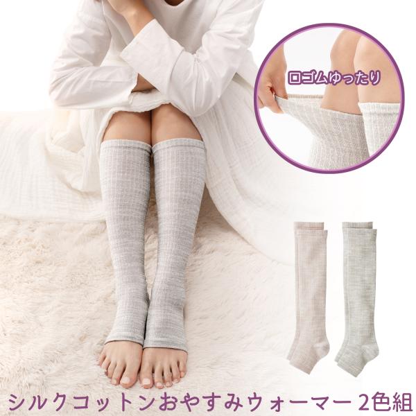 【2色組】ナイトソックス レッグウォーマー ロング シルクコットン おやすみウォーマー 日本製 口ゴムゆったり 締め付けない 寝る時 冷え性 絹 綿 三笠 MIKASA