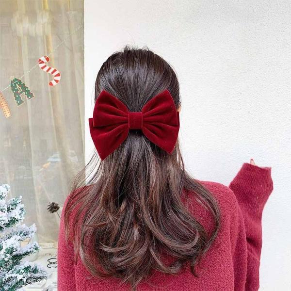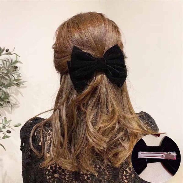 ヘアアクセサリー リボン クリップ 結婚式 大きめ 黒 赤 ベルベット プレゼント 40代 30代 20代 50代 10代 成人式 卒業式 入学式