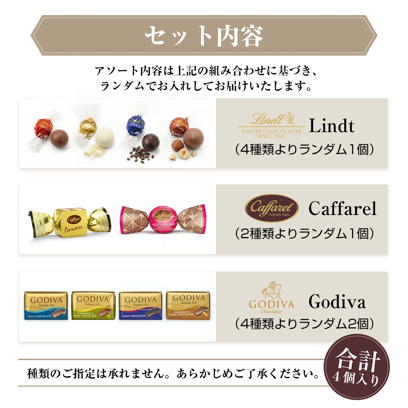 ・チョコレート詰め合わせ 4個入り