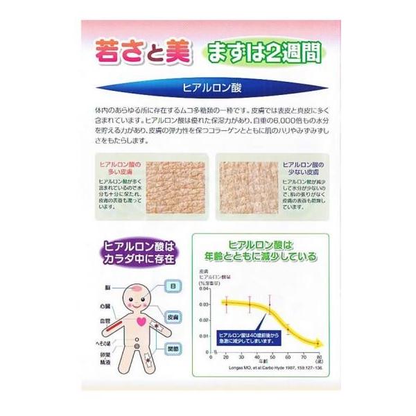 高純度ヒアルロン酸配合のヒアルロンQプラスIIIは、 3粒でヒアルロン酸150mg、コエンザイムQ10を20mg、 コンドロイチン120mgを補給します。 また、「ビオチン」は、皮膚や粘膜の健康維持を助ける栄養素です。