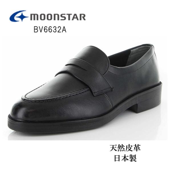 ムーンスター BV6632A 本革ローファー 日本製 3E 幅広 軽量 メンズ 通学用 中学生 高校生 疲れにくい 指定靴 黒 24.5〜28cm