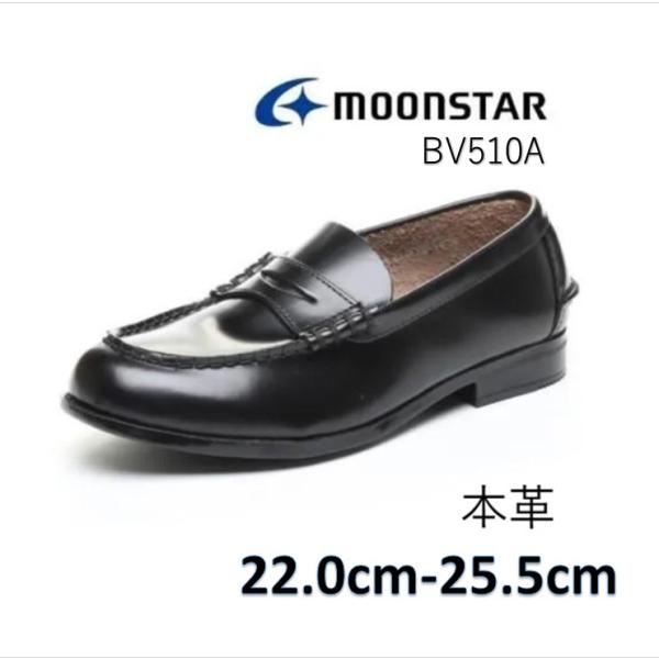 ムーンスター BV510A ローファー 天然皮革 ブラバス 黒 通学靴 学校靴 3E 踵ケリ付 本革 学生 通学 スクール 高校生 送料無料