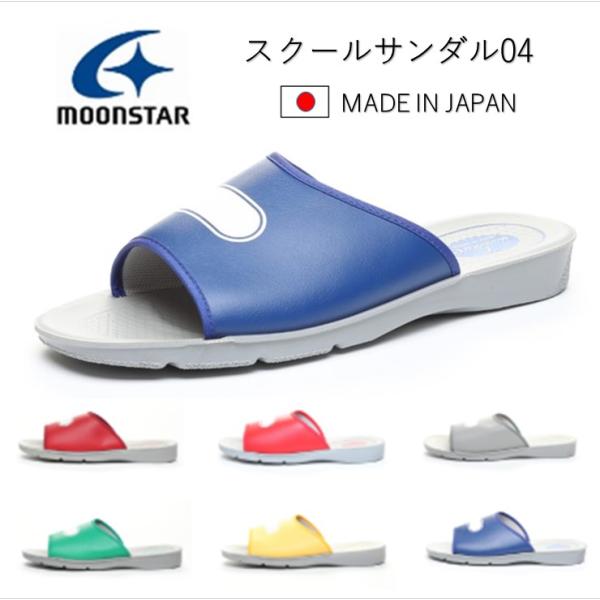 ムーンスター スクールサンダル 04 上履き 日本製 ネービー レッド イエロー グリーン グレー ダークレッド 送料無料 サイズ交換OK 中学生 高校生 MoonStar
