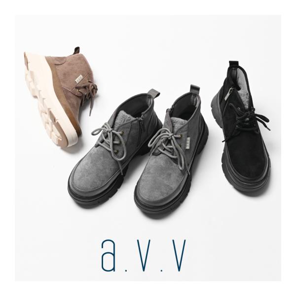 a.v.v (アー.ヴェ.ヴェ) レディース レースアップブーツ グレー 厚底 ボア スニーカー 紐 暖かい 軽い 優しい履き心地 デイリー 秋冬 AVV-1301