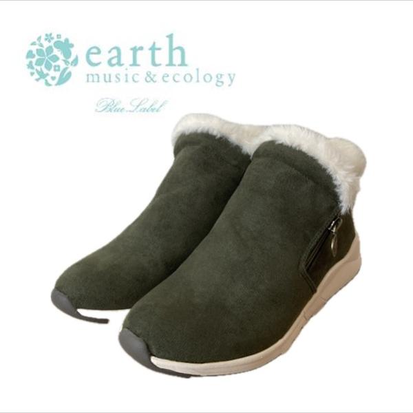 earth music&ecology bleulebel レディース ブーツ カーキ S M L LL 軽い 冬 ショート ボア ファー かわいい スニーカー EM-804