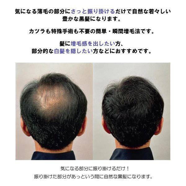 気になる薄毛の部分にサッとふりかけるだけで自然な若々しい豊かな黒髪になります!