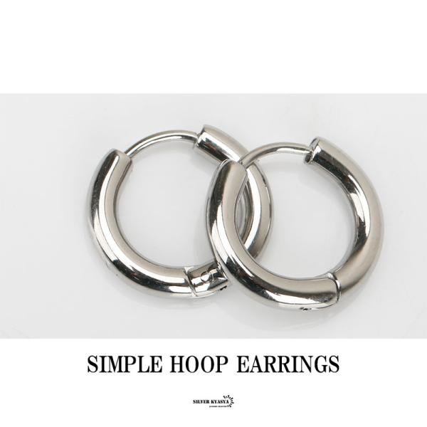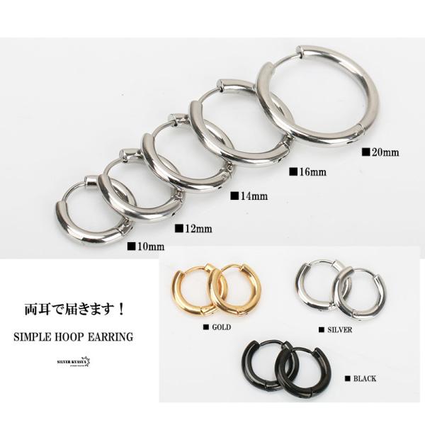 太め 両耳 幅3mm 定番 メンズ フープピアス シルバー ゴールド ブラック リングピアス 金 銀 黒 316Lピアス フープ