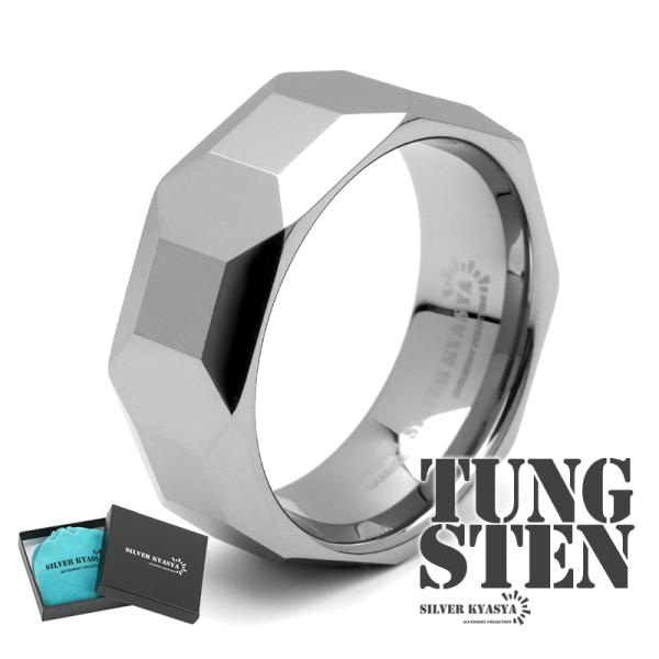 タングステン ダイヤカットリング 指輪 メンズ リング シルバー メタリック 金属アレルギー対応 専用BOX付属 爆買
