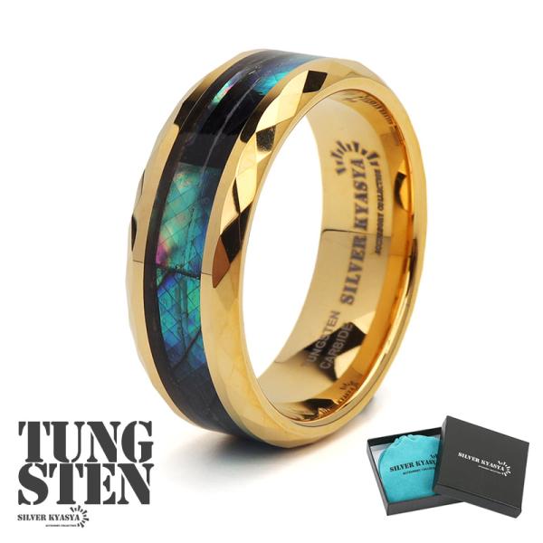 タングステン グリーン ラインリング メンズ リング 指輪 ゴールド ダイヤモンドカット ニュアンス つけっぱなしOK 専用BOX オリジナル 爆買