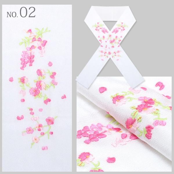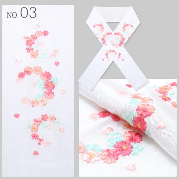 【メール便可】ちりめん 刺繍半衿 白 10柄 半衿 半襟 振袖 成人式 卒業式 洗える フォーマル 柄 光沢が有り、しなやか 襟元がちらりと光る♪