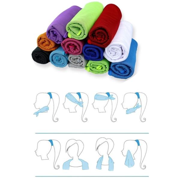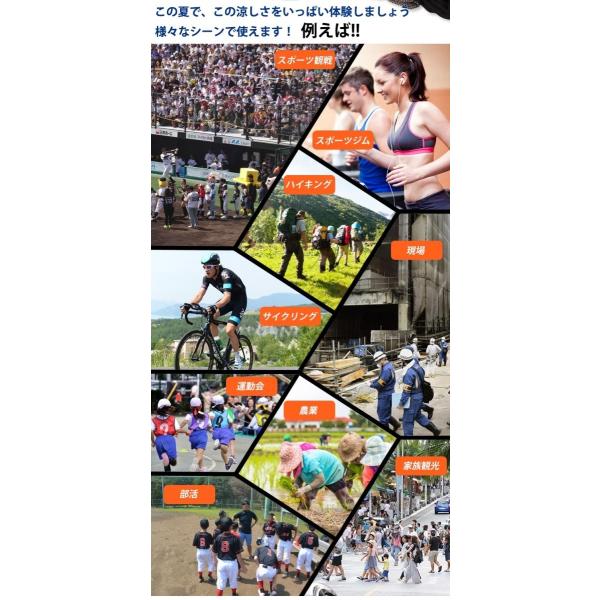 水に濡らして、絞って振れば何度でも冷たくなります。