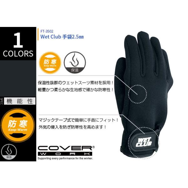 COVERWORK カヴァーワーク (FT-3502) Wet Club 手袋2.5mm ウェットマジックテープ 防寒 作業用 手袋