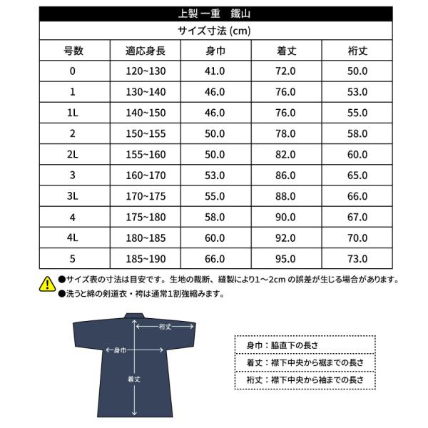 【一重道着3号のみゆったりサイズ】剣道 上製一重道着 鐵山 0号〜5号 剣道着 剣道衣 背継 紺 白 部活 練習 稽古
