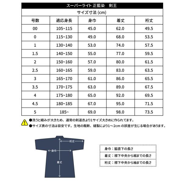 ※洗うと縮みが大きため、通常の剣道衣より1サイズ大きめに作られてます。