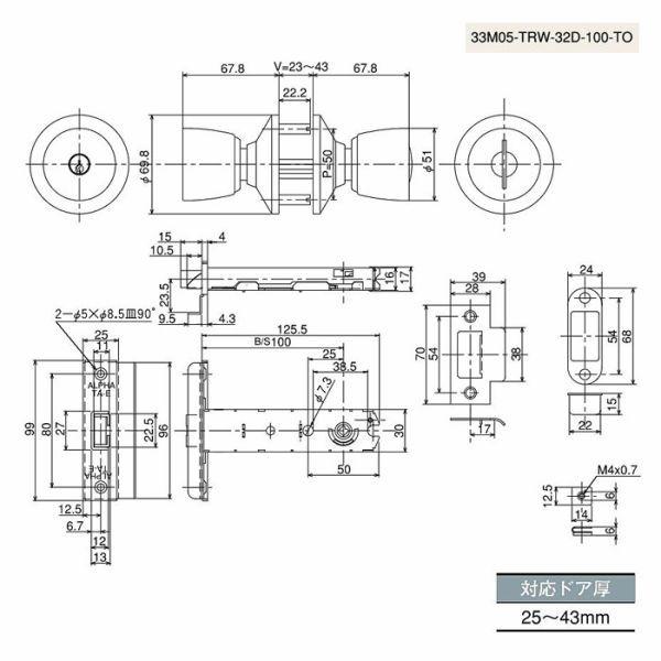【33M05-TRW-32D-100-ALU】 (アルファミリオンロック取替錠)バックセット100mmの万能型取替錠 ALPHa