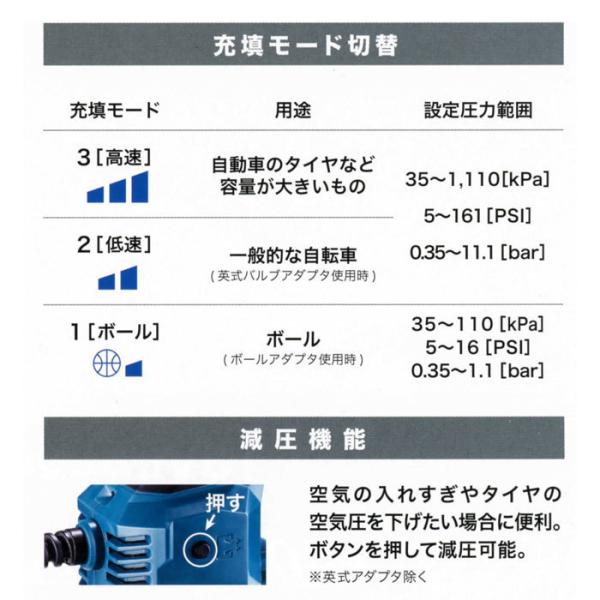 ●空気の入れすぎやタイヤの空気圧を下げたい場合に便利な減圧機能