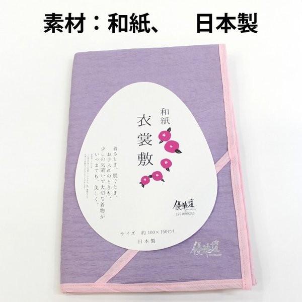 珍しい色付きの衣装敷き紙です。おしゃれなピンクかパープルよりお選びください。日本製の和紙素材で出来ておりますので品質も安心です。100cm×150cmサイズですのでゆったりと使えます。着物を着る時、脱ぐ時、たたむ時、少しの気遣いで大事なお着物を汚れから守ってくれます。また他人とは違うカラー敷きでお洒落感を演出でき、より一層着物を着るのが楽しくなります!