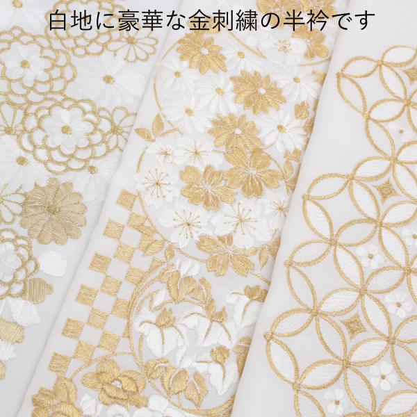 半衿 刺繍 白地 金 半襟 振袖用 袴用 成人式 卒業式 結婚式 ゴールド 古典柄 刺繍襟 洗える 大人 女性 レディース ポリエステル