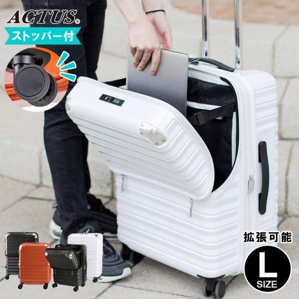 スーツケース キャリーケース フロントオープン Lサイズ ストッパー 大型 拡張 軽量 軽い 静音 メンズ レディース ビジネス 旅行 1年保証 アクタス フリーズ