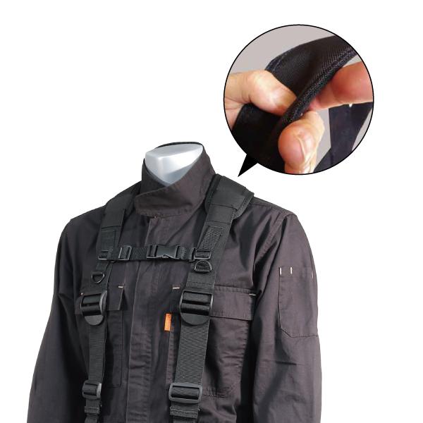 DENSAN デンサン ジェフコム JEFCOM ベルト・サスペンダー サスペンダー 腰 腰部 サポートベルト 作業用 腰 負担 軽減 後付簡単 ベルト巻込み式 フリーサイズ ブラック 黒色 くろ クロ ナイロン
