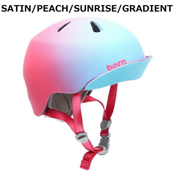 製造時期の違いによりヘルメット本体前部分ロゴのプリント位置が商品画像と左右異なる場合があります。■ブランド:bern バーン■商品名:NINA ニーナ■メーカー品番/カラー:BE-VJGSWTV SATIN WHITE サテンホワイトBE-VJGSPNKV SATIN HOT PINK サテンホットピンクBE-VJGSNYV SATIN NAVY BLUE サテンネイビーブルーBE-VJGSSPV SATIN SEAGLASS POLKA DOT サテンシーグラスポルカドットBE-VJGGPUV GLOSS PURPLE グロスパープルBE-VJGSRSV SATIN RED STRAWBERRY サテンレッドストロベリーBE-VJGSPPV SATIN PURPLE POLKA DOT サテンパープルポルカドットBE-VJGSWFV SATIN WHITE FLORAL サテンホワイトフローラルBE-VJGSUNPV SATIN PEACH SUNRISE GRADIENT サテンピーチサンライズグラディエント■商品説明:汗をかきやすい頭回り部分のバイザー付インナーは取り外して洗濯することで、ヘルメット本体も清潔に保つことが可能。インナー後頭部にはベルクロによる簡単なサイズ調整が可能なEZ-FITインナーシステムを採用。日々大きくなる頭のサイズに合わせて簡単にフィッティングの調整が可能。送り迎えの自転車から、バランスバイクなどのアクティブシーンまで。