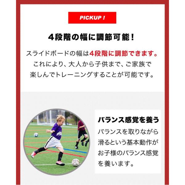 FIELDOORスライドボードの幅は4段階に調節できます。 これにより、大人から子供まで、ご家族で自分の足で滑り、 バランスをとるという感覚を共有しながら 楽しんでトレーニングすることが可能です。