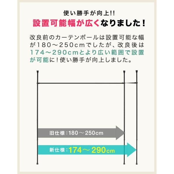 1年保証 突っ張り棒 カーテンポール 間仕切り 幅174〜290cm カーテンレール パーテーション伸縮 目隠し 穴あけ不要 高さ調節可能 天井 つっぱり 賃貸OK 送料無料