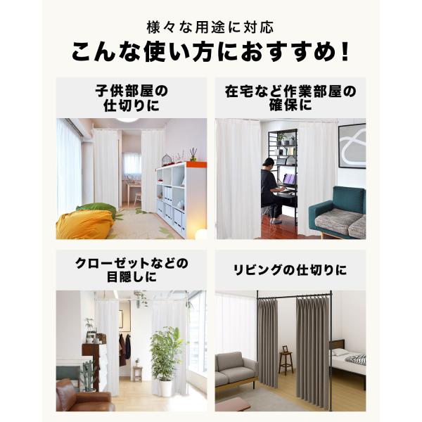 カーテンポールにカーテンを取り付けられるカーテンリングが16個付属。手持ちのカーテンを使って簡単に部屋を仕切ることができます。