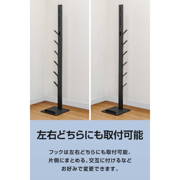 フックは左右どちらにも取付可能。片側にまとめる、交互に付けるなどお好みで変更できます。