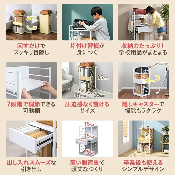 1年保証 ランドセルラック キャスター付き 目隠しワゴン RiZKiZ 幅45cm×高さ85cm ランドセル収納 スリム 可動棚 引出し付き お片付け 本棚 送料無料