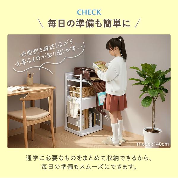 時間割を確認しながら必要なものが取り出しやすいよう、通学に必要なものをまとめて収納できるので毎日の準備もスムーズにできます。