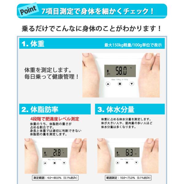 体脂肪率測定範囲:4.0-8.0%(0.1%単位)