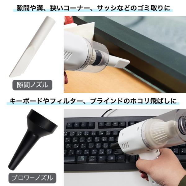 隙間ノズル・ブロワーノズル付きだから用途によって使い分けることができます