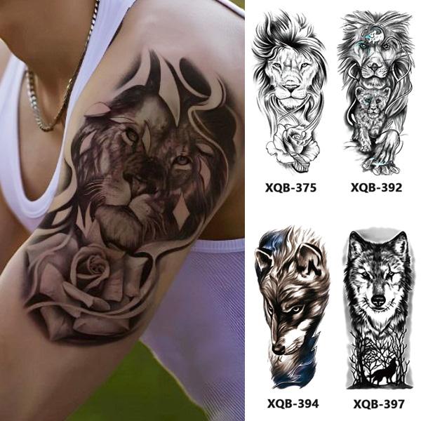 タトゥーシール ライオン / オオカミ ■ テンポラリー タトゥー ボディーシール ボディーステッカー ファッション おしゃれ 消える アニマル 動物 狼