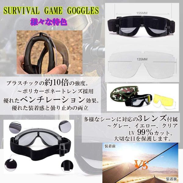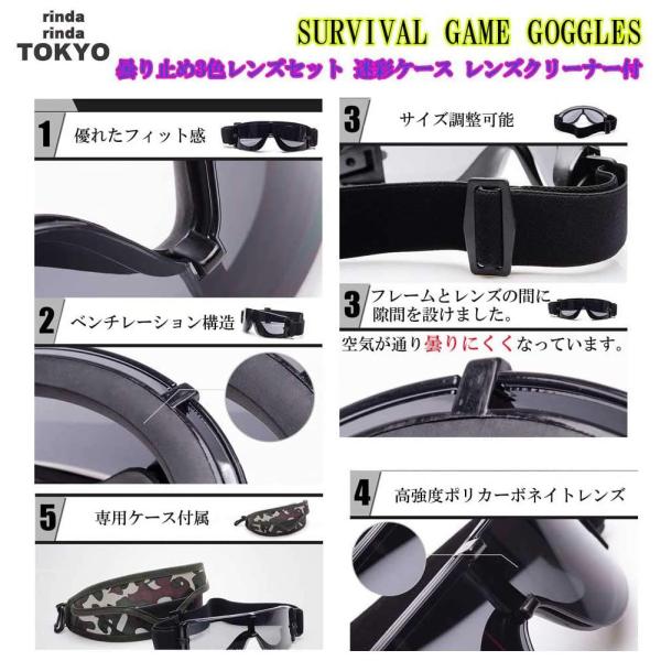 サバゲー ゴーグル タクティカル 3色レンズ 迷彩ケース レンズクリーナー付 サバイバル ゲーム ミリタリー X800 タイプ 曇り止め rinda