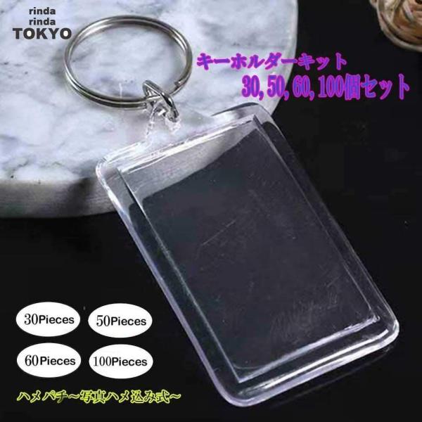 キーホルダー オリジナル キット パーツ 写真 入れ 30個 長方形 カットテンプレート付 アクリル フォト フレーム 手作り アクセサリー 作成 rinda