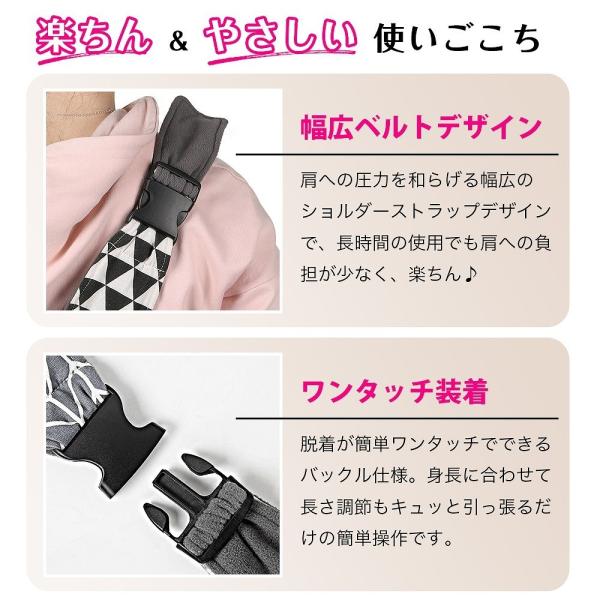 幅広ベルトデザインで、長時間の使用でも肩への負担が少なく、楽ちん♪