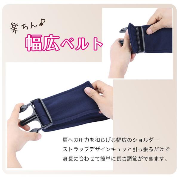 幅広ショルダーで肩への食い込みを軽減、疲れにくく楽ちんです!